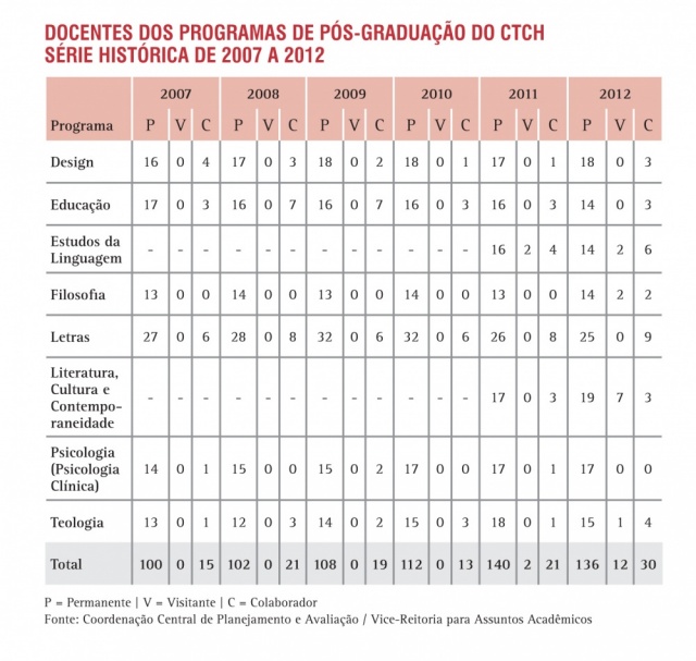 Docentes dos Programas de Pós-Graduação do CTCH - Série Histórica 2007 a 2012