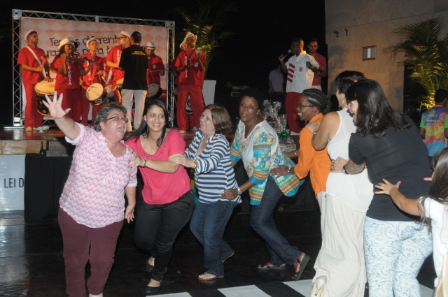 Festa de Natal dos Funcionários. Bateria de escola de samba nos pilotis do Edifício da Amizade. 20/12/2013. Fotógrafo Antônio Albuquerque. Acervo do Núcleo de Memória.