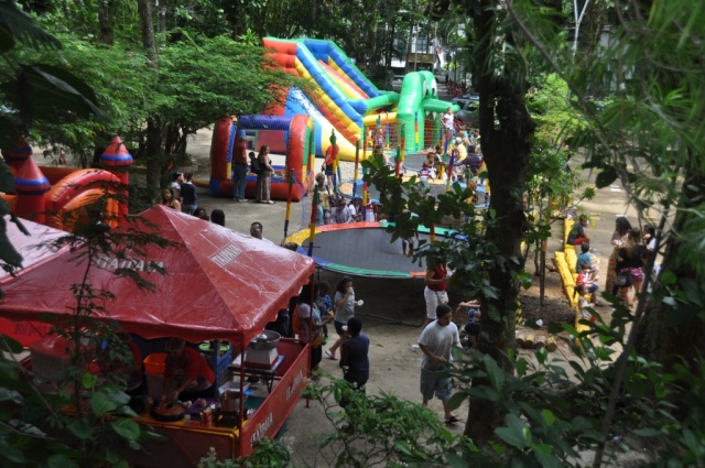 Festa de Natal dos Funcionários. O pilotis do Edifício da Amizade totalmente ocupado pelos funcionários e suas famílias nas diversas atividades. 20/12/2013. Fotógrafo Antônio Albuquerque. Acervo do Núcleo de Memória.
