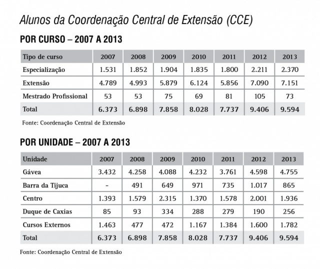 Alunos da Coordenação Central de Extensão (CCE) - série histórica