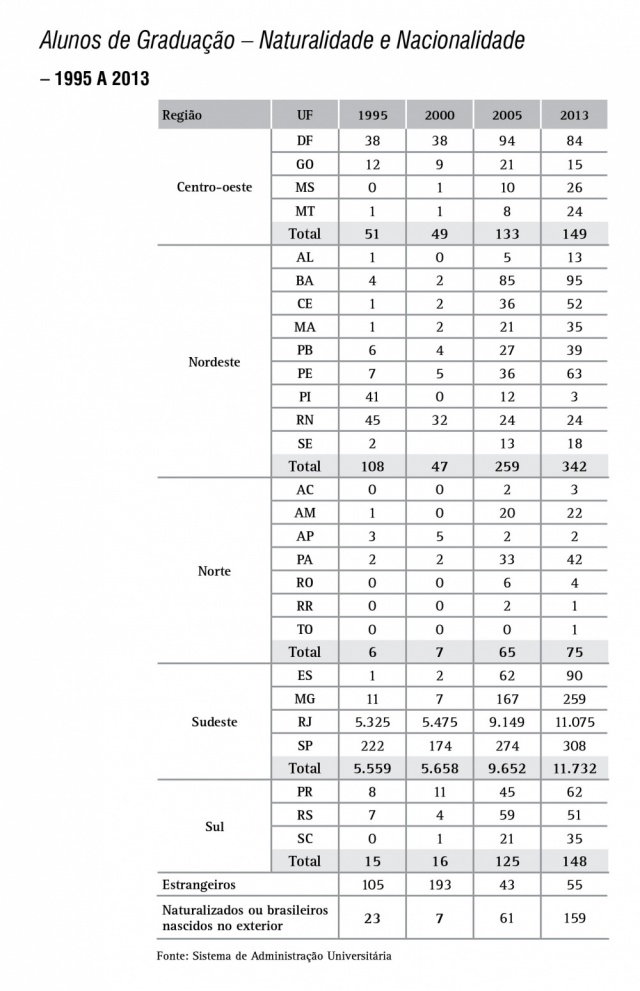 Alunos de Graduação naturais de outros estados da federação e estrangeiros