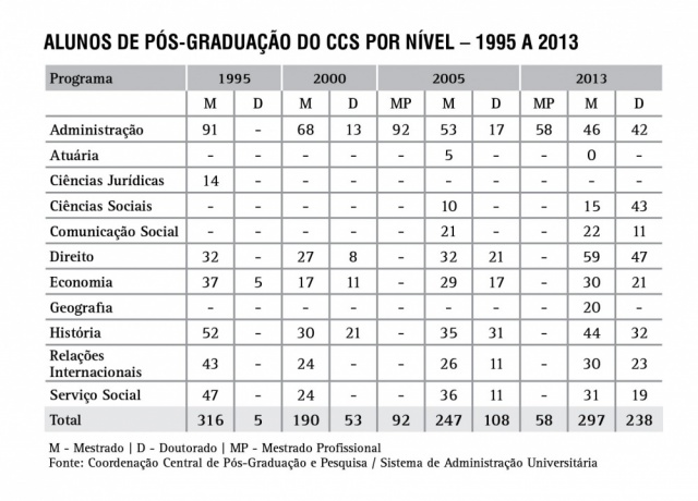 Alunos de Pós-Graduação do CCS por nível - série histórica