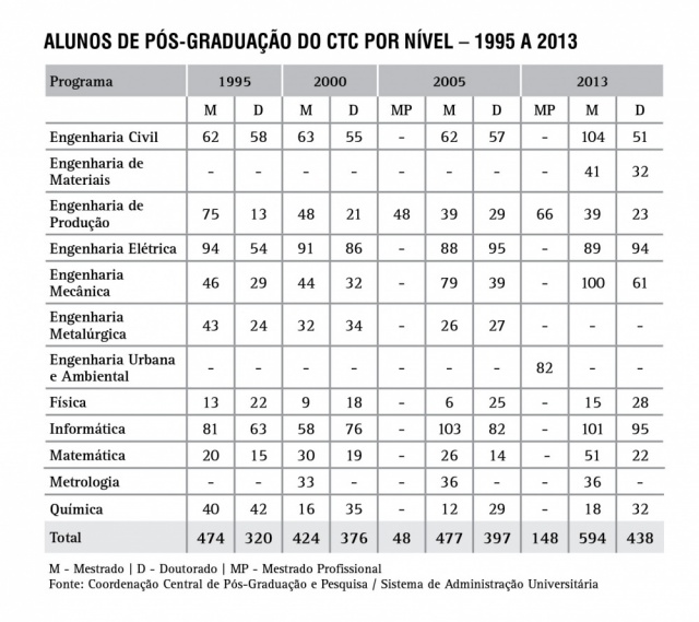 Alunos de Pós-Graduação do CTC por nível - série histórica