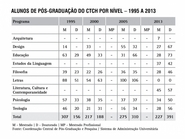 Alunos de Pós-Graduação do CTCH por nível - série histórica