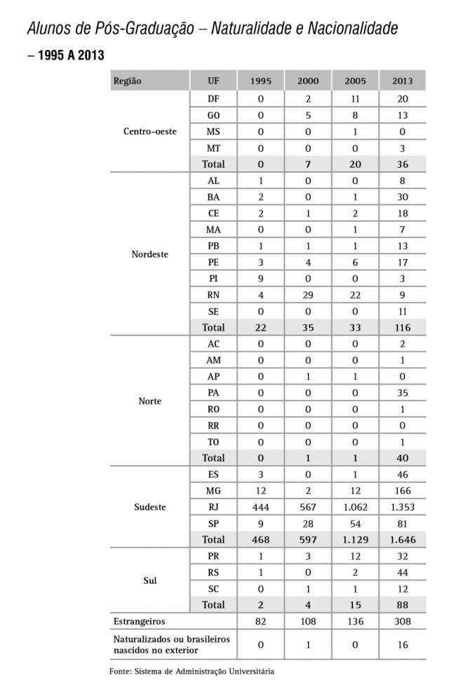 Alunos de Pós-Graduação - Naturalidade e Nacionalidade - série histórica
