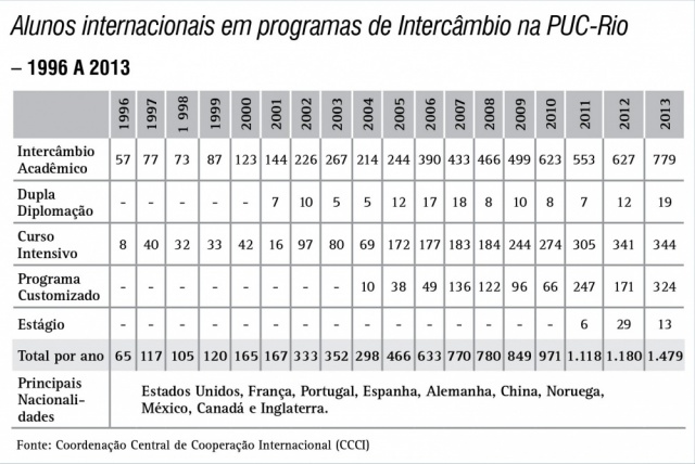 Alunos internacionais em programas de intercâmbio na PUC-Rio - série histórica