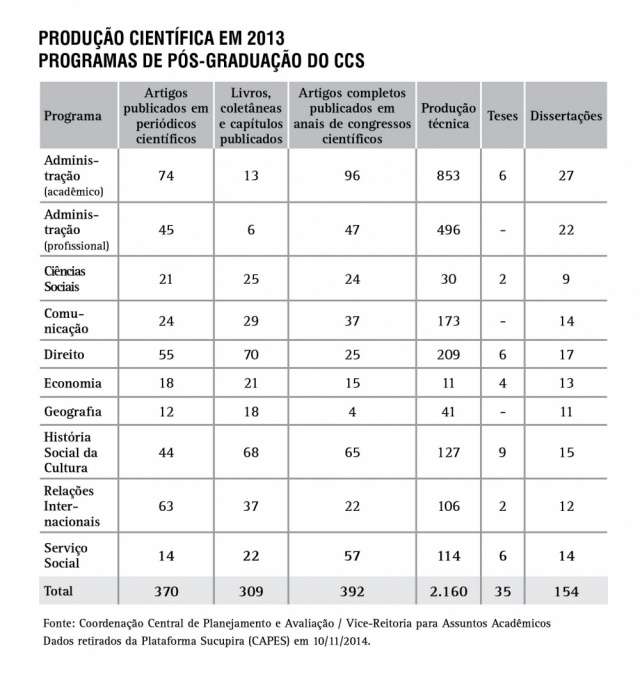 Produção Científica em 2013 - Programas de Pós-graduação do CCS