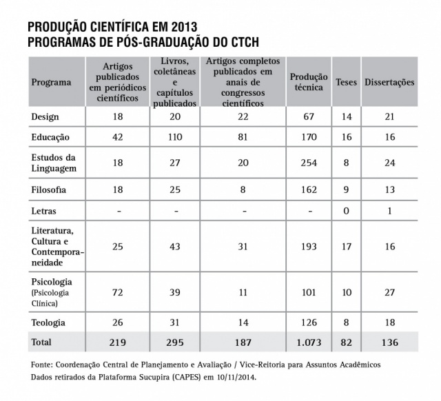 Produção Científica em 2013 - Programas de Pós-graduação do CTCH