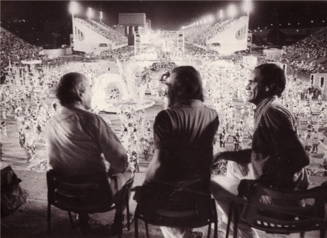 Leonel Brizola e Darcy Ribeiro na Inauguração do Sambódromo. > Inaugurado o Sambódromo. Inaugurado o Sambódromo, na Praça XI, Rio de Janeiro, projeto de Oscar Niemeyer destinado ao desfile das Escolas de Samba no Carnaval.
