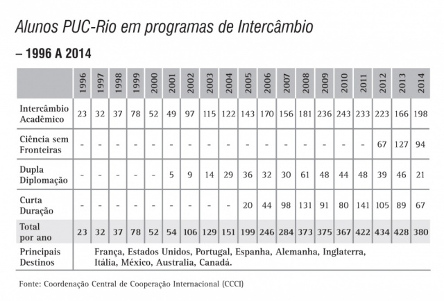 Alunos da PUC-Rio em programas de intercâmbio - série histórica