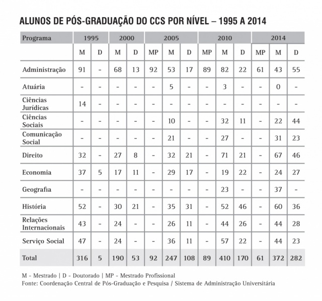 Alunos de Pós-Graduação do CCS por nível - série histórica
