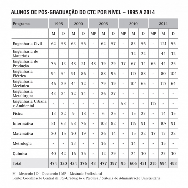 Alunos de Pós-Graduação do CTC por nível - série histórica