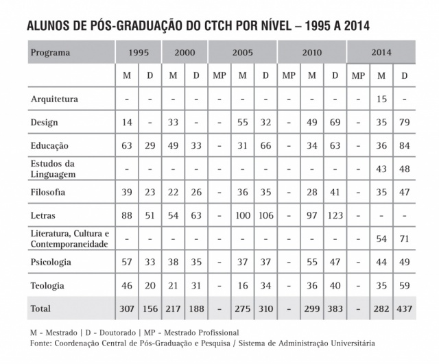 Alunos de Pós-Graduação do CTCH por nível - série histórica