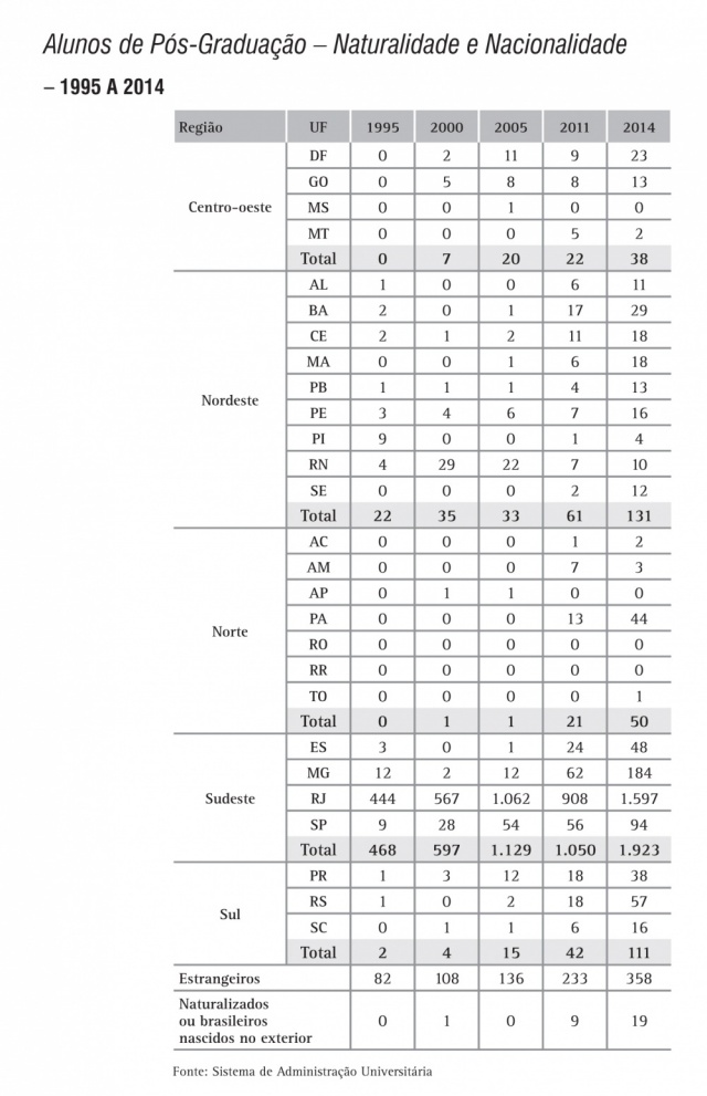 Alunos de Pós-Graduação - Naturalidade e Nacionalidade - série histórica