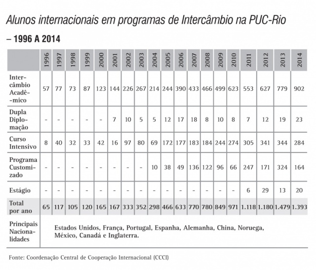 Alunos internacionais em programas de intercâmbio na PUC-Rio - série histórica
