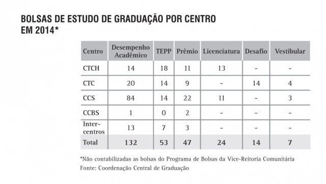 Bolsas de estudo de Graduação, por Centro