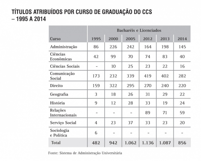Títulos atribuídos por curso de Graduação do CCS - série histórica