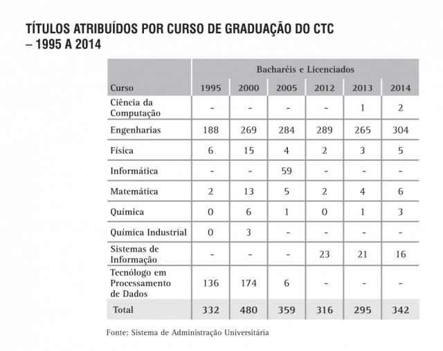 Títulos atribuídos por curso de Graduação do CTC - série histórica