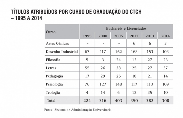 Títulos atribuídos por curso de Graduação do CTCH - série histórica