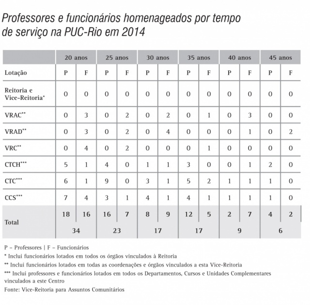 Professores e Funcionários homenageados por tempo de serviço na PUC-Rio