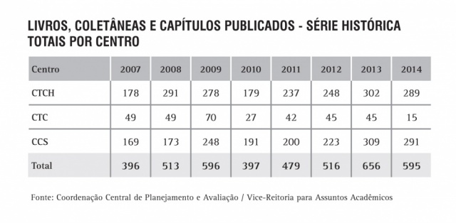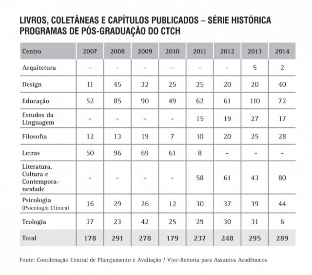 Livros, Coletâneas e Capítulos publicados - Programas de Pós-Graduação do CTCH - série histórica