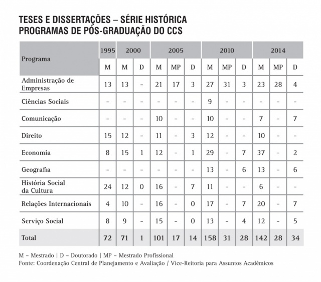 Teses e Dissertações - Programas de Pós-Graduação do CCS - série histórica