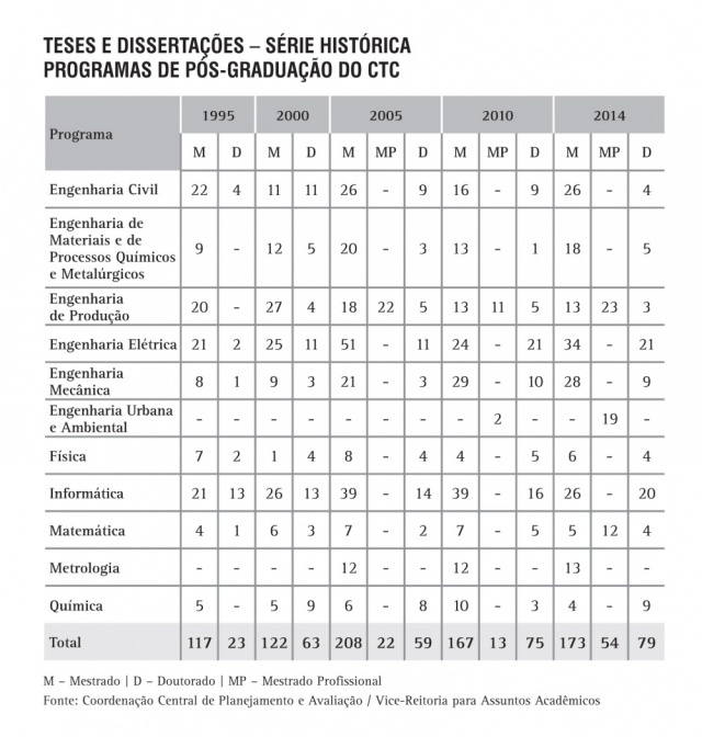 Teses e Dissertações - Programas de Pós-Graduação do CTC - série histórica