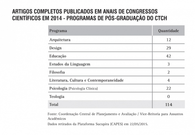 Artigos publicados em anais de congressos científicos pelos Programas de Pós-Graduação do CTCH