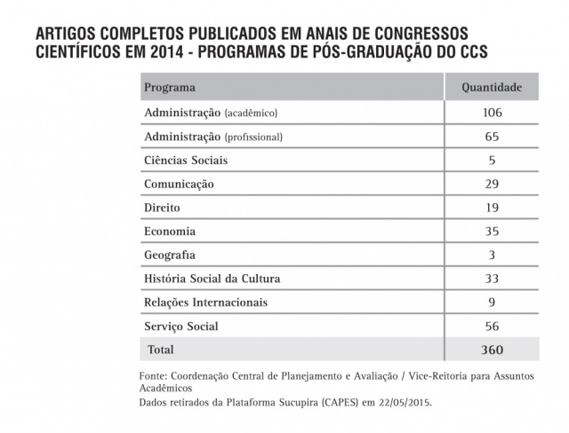Artigos publicados em anais de congressos científicos pelos Programas de Pós-Graduação do CCS