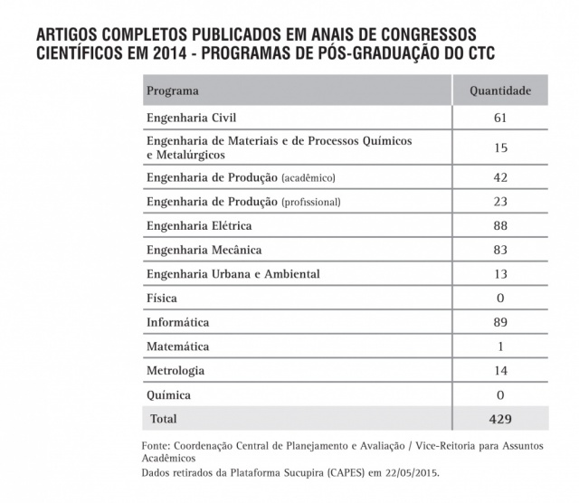 Artigos publicados em anais de congressos científicos pelos Programas de Pós-Graduação do CTC