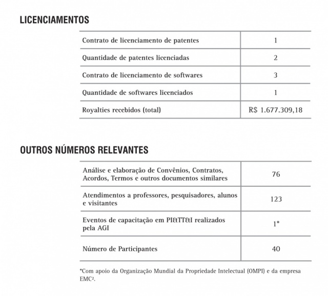 Licenciamentos e outros números relevantes relativos a Propriedade Intelectual