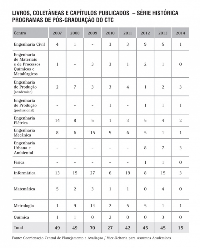 Livros, Coletâneas e Capítulos publicados - Programas de Pós-Graduação do CTC - série histórica