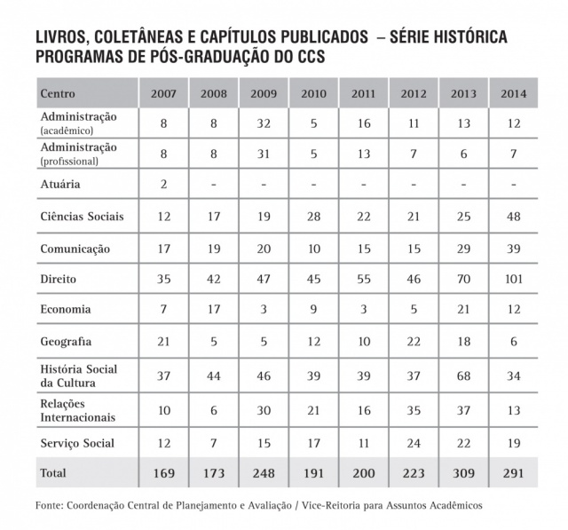 Livros, Coletâneas e Capítulos publicados - Programas de Pós-Graduação do CCS - série histórica