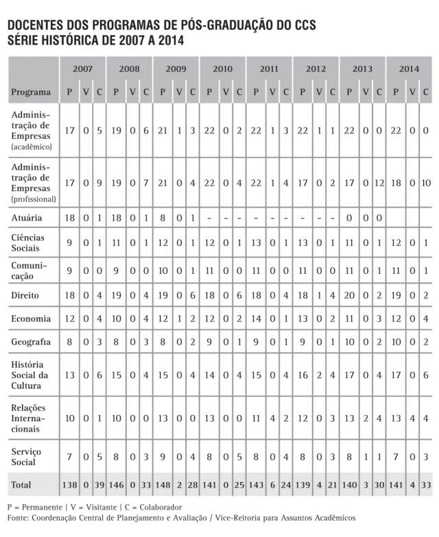 Docentes dos Programas de Pós-Graduação do CCS - Série Histórica 2007 a 2014