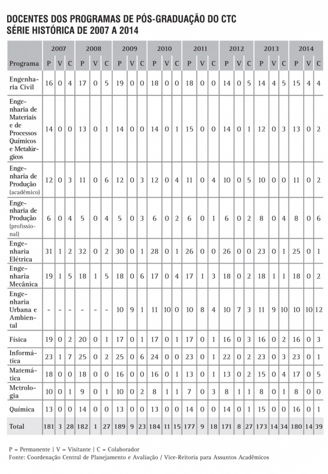 Docentes dos Programas de Pós-Graduação do CTC - Série Histórica 2007 a 2014