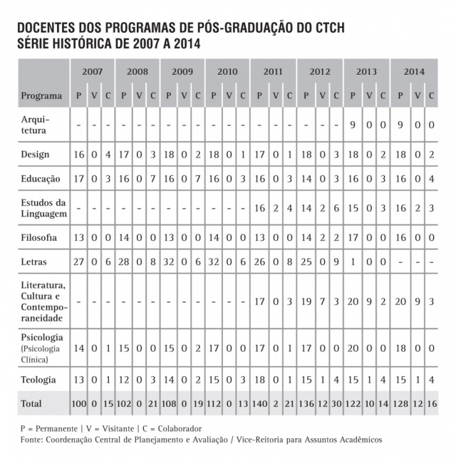 Docentes dos Programas de Pós-Graduação do CTCH - Série Histórica 2007 a 2014