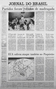 Manchete do Jornal do Brasil que anuncia a extinção dos partidos políticos. > Extinção da ARENA e do MDB e reformulação dos partidos políticos. A Lei Orgânica dos Partidos extinguiu as duas legendas e estabeleceu liberdade partidária.