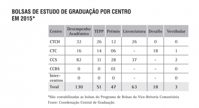 Bolsas de estudo de Graduação, por Centro
