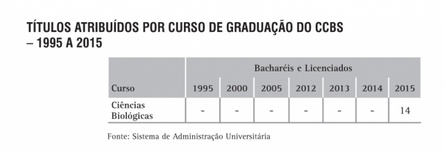 Títulos atribuídos por curso de Graduação do CCBS - série histórica
