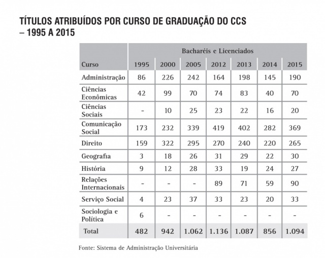 Títulos atribuídos por curso de Graduação do CCS - série histórica
