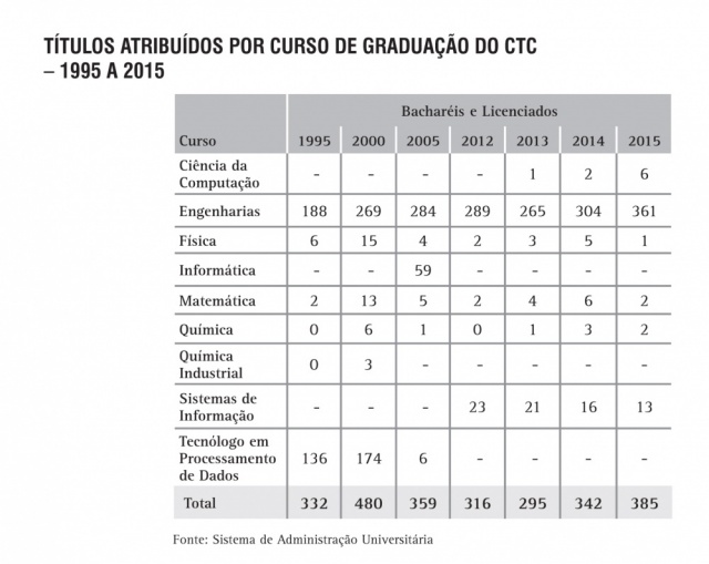 Títulos atribuídos por curso de Graduação do CTC - série histórica