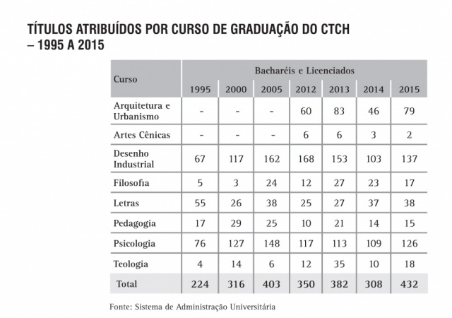 Títulos atribuídos por curso de Graduação do CTCH - série histórica