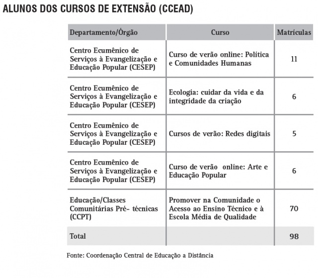 Alunos dos cursos de extensão (CCEAD)