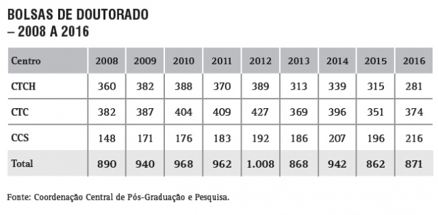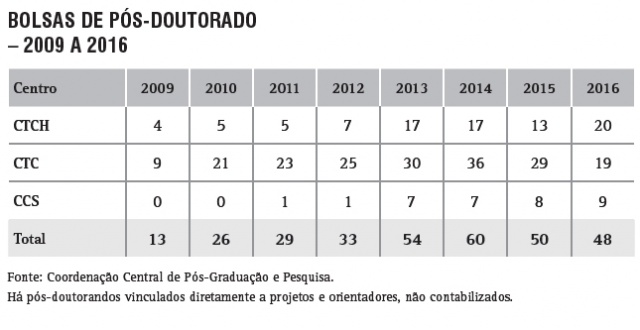 Bolsas de Pós-Doutorado do CTC - série histórica