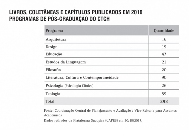 Livros, Coletâneas e Capítulos publicados pelos Programas de Pós-Graduação do CTCH