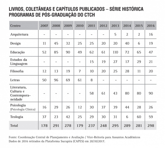 Livros, Coletâneas e Capítulos publicados - Programas de Pós-Graduação do CTCH - série histórica