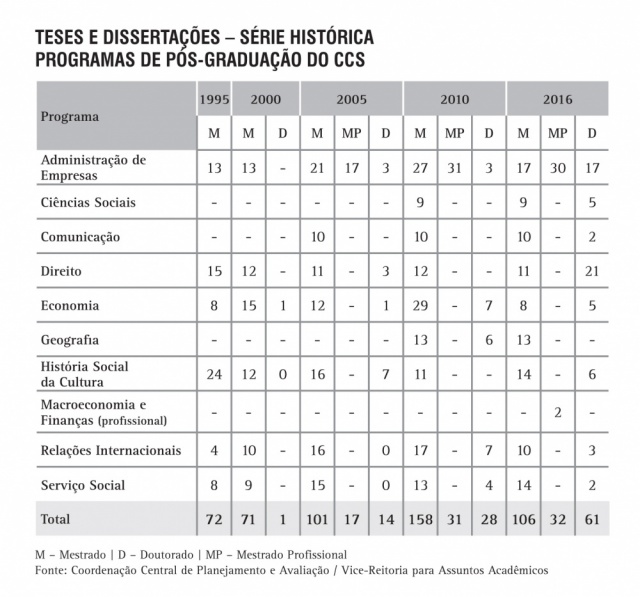 Teses e Dissertações - Programas de Pós-Graduação do CCS - série histórica