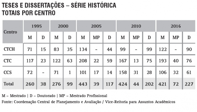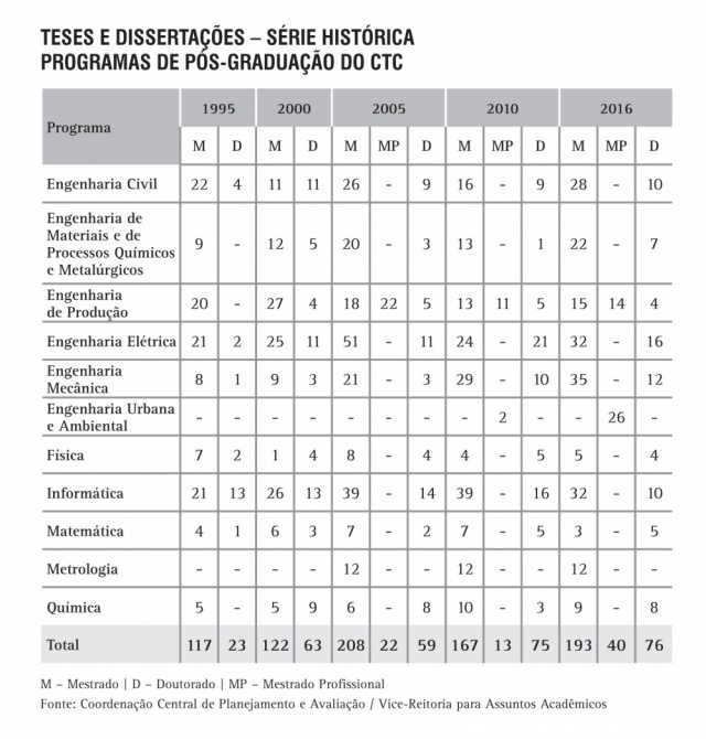 Teses e Dissertações - Programas de Pós-Graduação do CTC - série histórica
