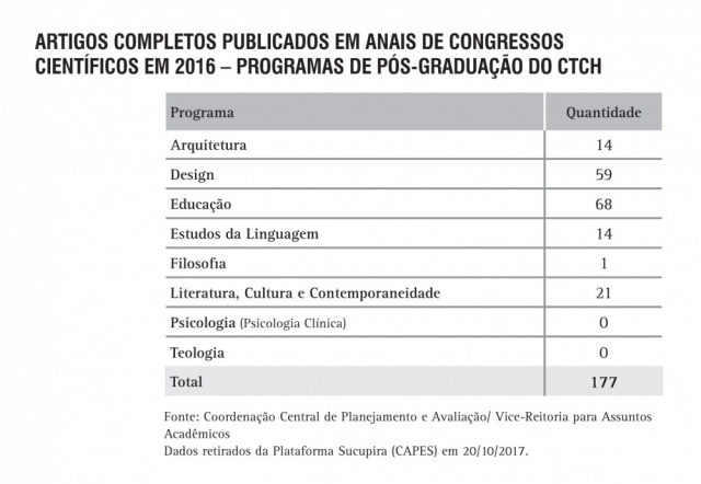 Artigos publicados em anais de congressos científicos pelos Programas de Pós-Graduação do CTCH