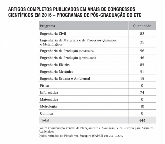 Artigos publicados em anais de congressos científicos pelos Programas de Pós-Graduação do CTC